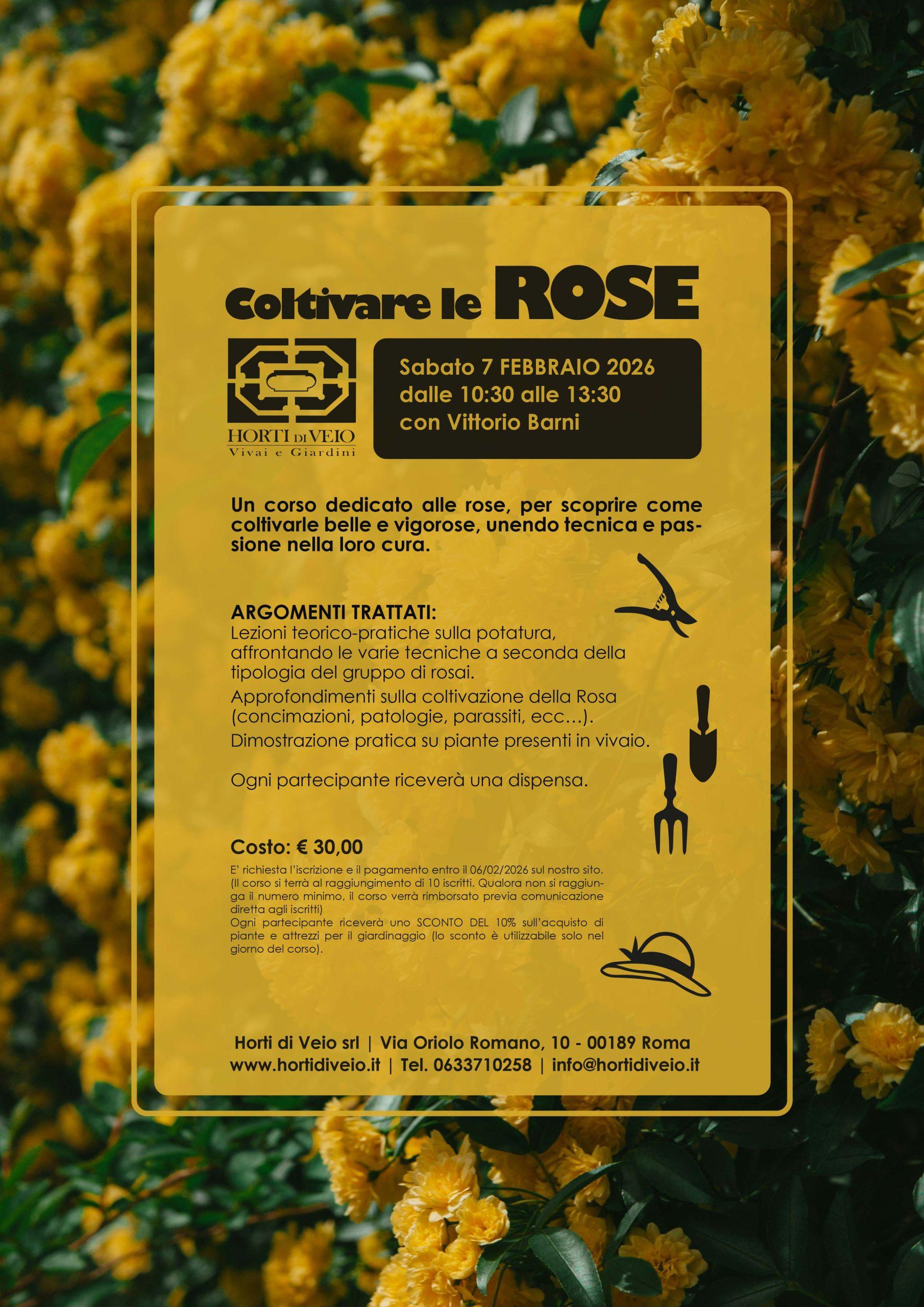 Un corso dedicato alle rose, per scoprire come coltivarle belle e vigorose, unendo tecnica e passione nella loro cura.