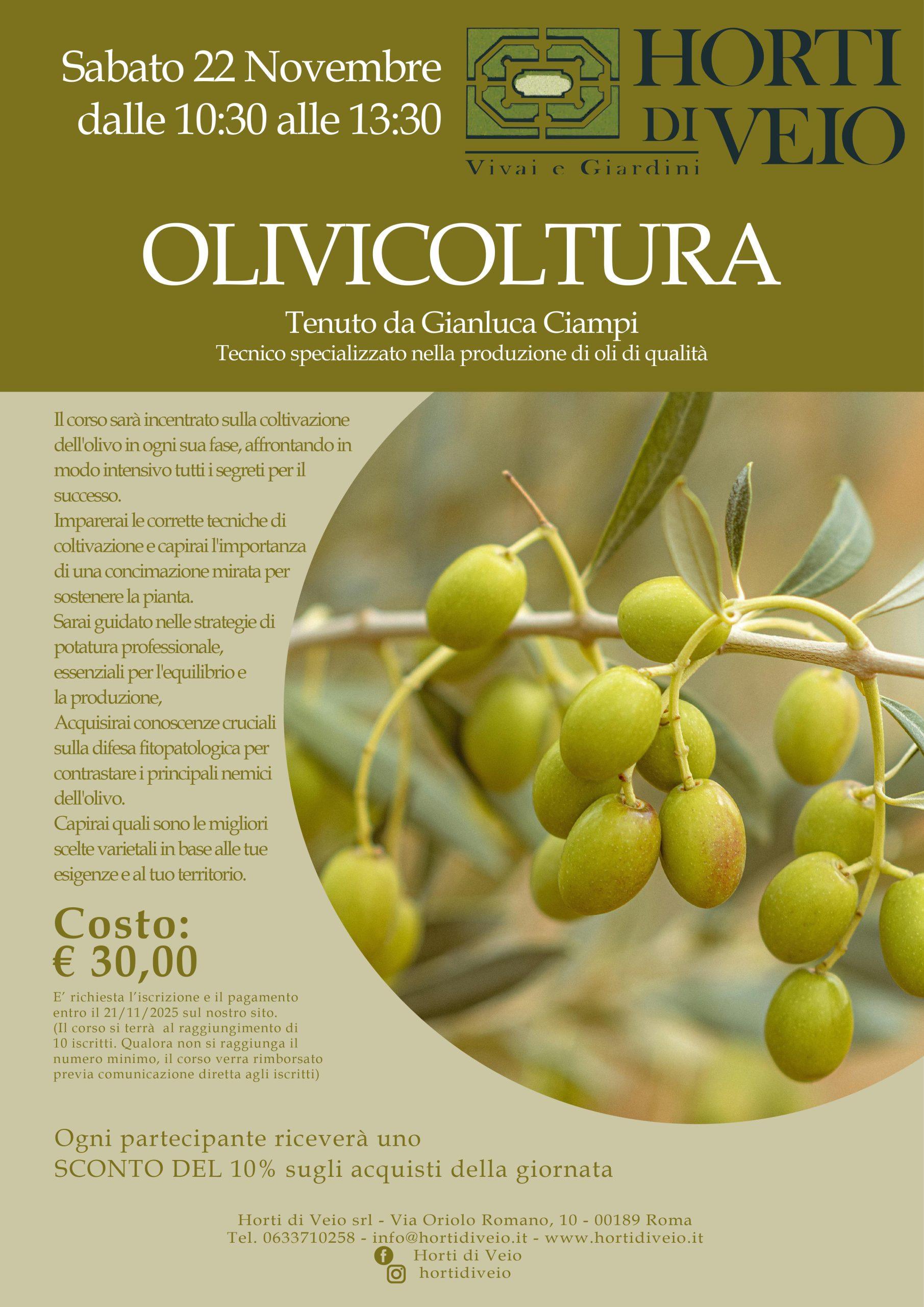 Il corso è incentrato sulla coltivazione dell’olivo, coprendo sia la gestione delle piante in vaso che di quelle a dimora in terra.